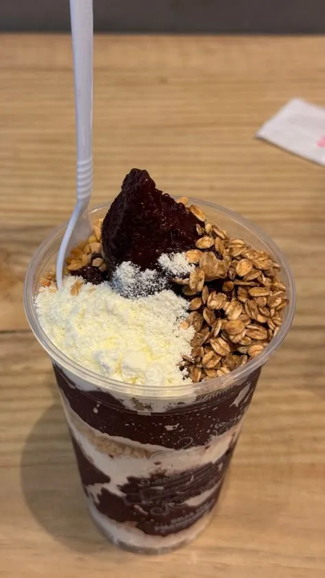 Açaí cremoso, bem montado e chegou intacto. Parabéns a franquia.